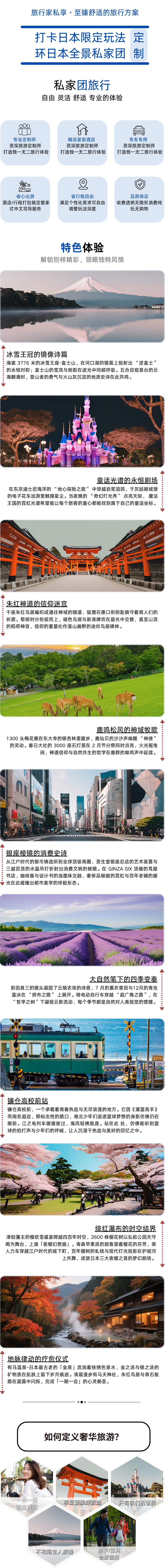 从京都千年古刹的晨钟暮鼓,到东京涩谷街头的电子霓虹,日本用 14.5 万平方公里的土地,完美诠释了传统与现代的共生哲学。在这里,你可以穿着和服漫步伏见稻荷大社的千本鸟居,转身便在秋叶原的动漫店与虚拟偶像互动;可以在米其林三星怀石料理店品味季节的馈赠。